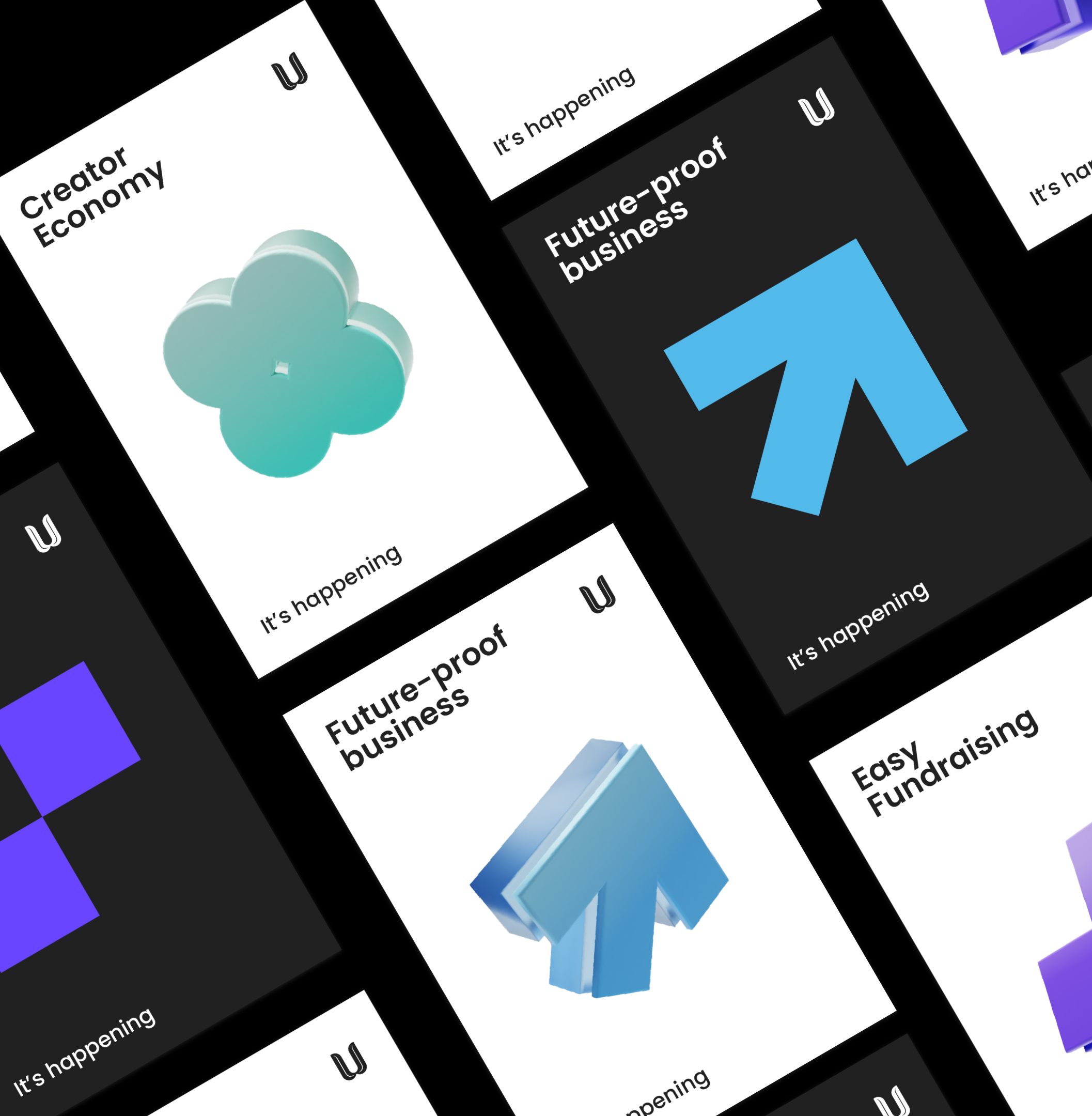 Describes the approved geometric shapes or design elements associated with the Unit Network brand identity. Provides usage guidelines for incorporating shapes into branded materials, such as patterns
