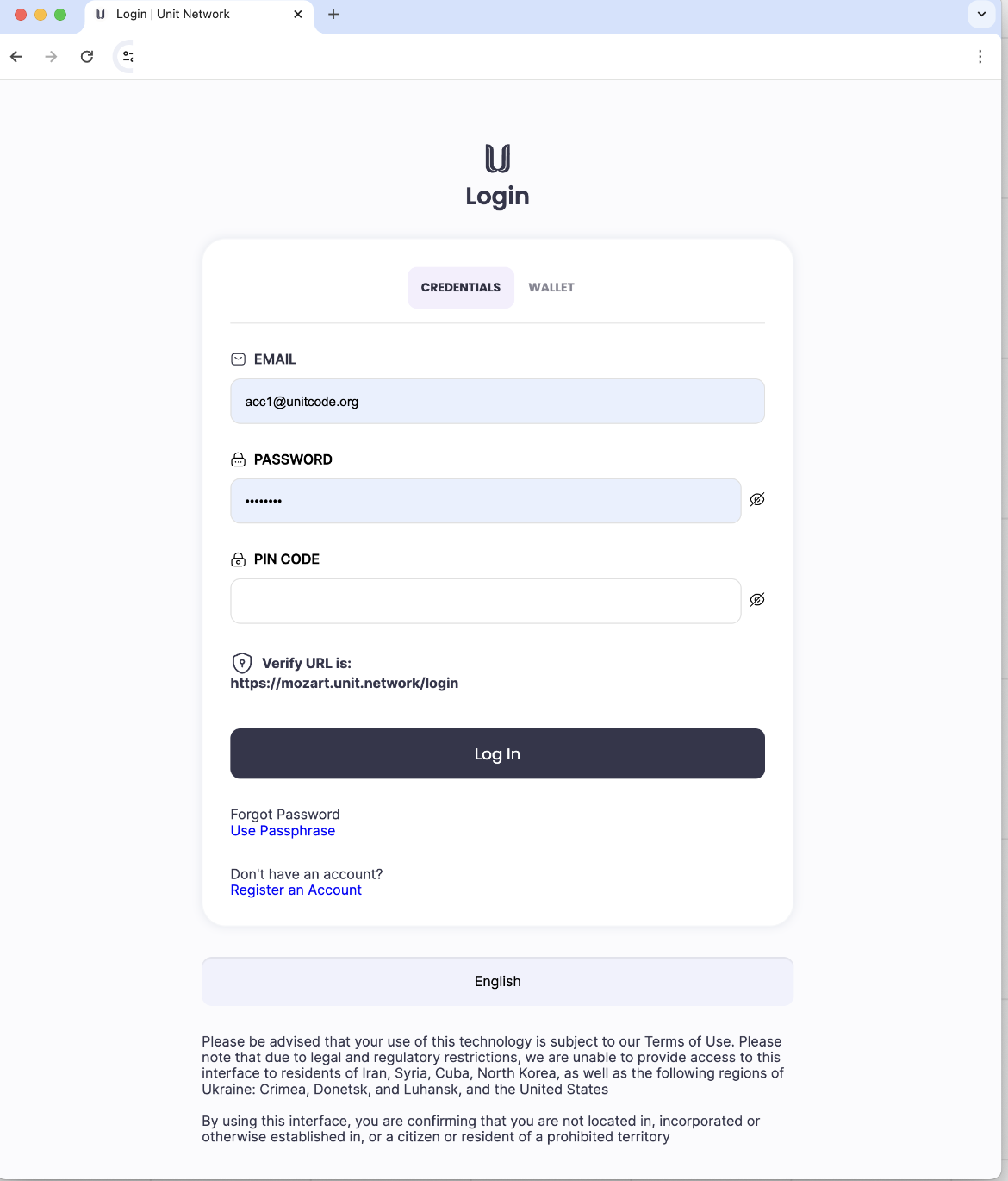 Login - Credentials